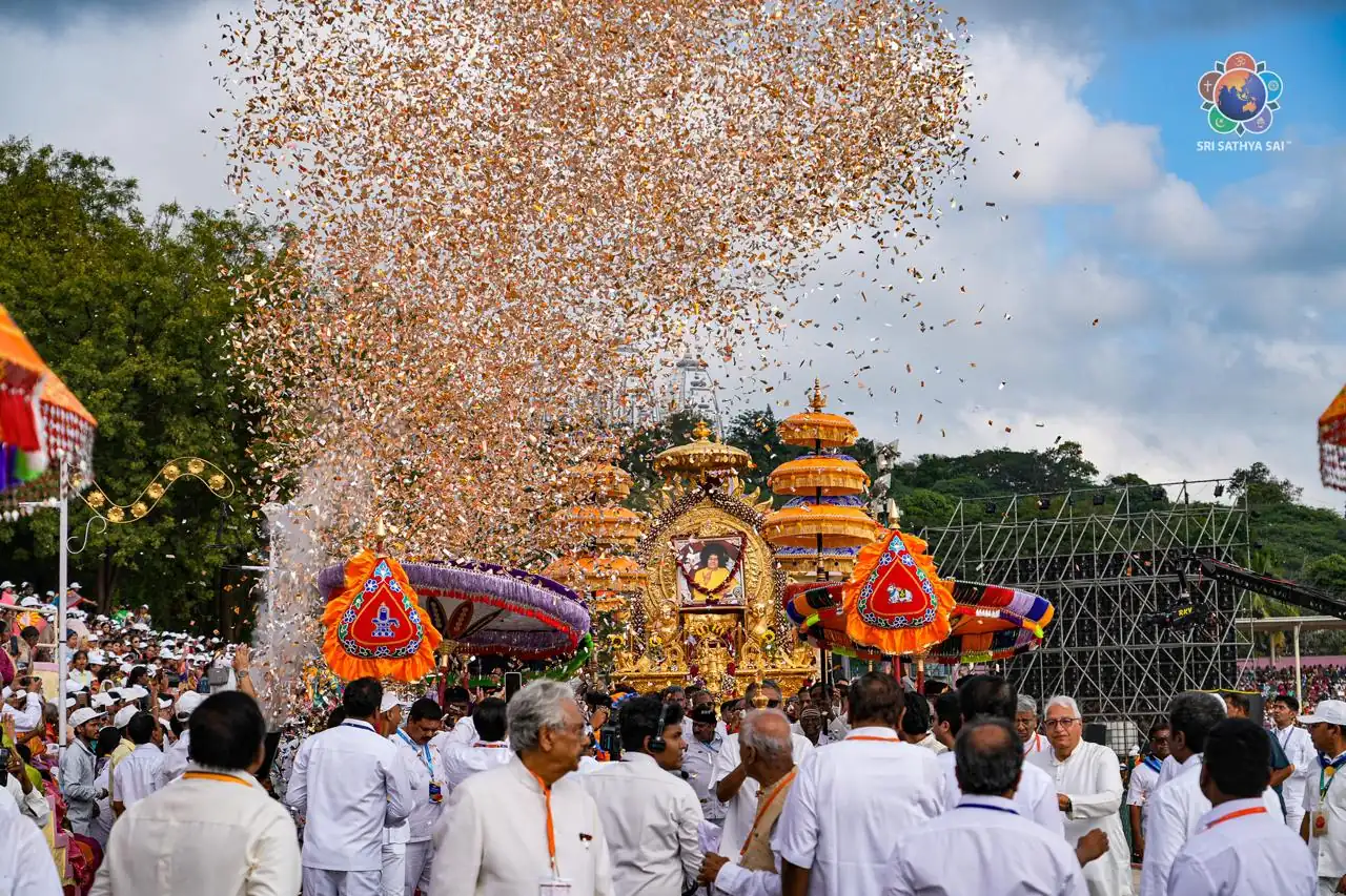 Dirigiéndose a los asistentes, el primer ministro Narendra Modi afirmó que estar en la divina presencia de Baba siempre ha sido una experiencia emotiva y espiritual para él. Añadió que el valor central de la civilización india siempre ha sido el servicio, y que el principio rector del «Sevoparama Dharmah» ha sostenido a la nación a lo largo de los siglos. Señaló que, aunque Sri Sathya Sai Baba no esté físicamente presente, sus principios eternos de amor, servicio y hermandad universal siguen guiando a millones de devotos en todo el mundo.